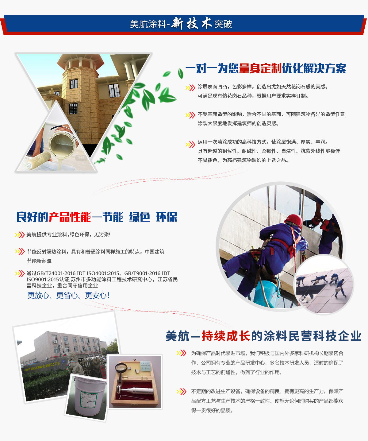 太倉(cāng)市美航涂料有限公司是一家集高端涂料產(chǎn)品和工業(yè)新材料的研發(fā)、生產(chǎn)、加工、銷售和服務(wù)一體的現(xiàn)代化企業(yè)。公司創(chuàng)建于2005年06月,立足江蘇太倉(cāng),服務(wù)大家。分別在重慶、浙江金華、廣東東莞、湖南郴州設(shè)有工程研發(fā)打樣中心、加工中心和服務(wù)中心。公司以質(zhì)量為企業(yè)生命,全員參與通過ISO9001:2008質(zhì)量管理體系認(rèn)證和ISO14001:2004環(huán)境管理體系認(rèn)證。